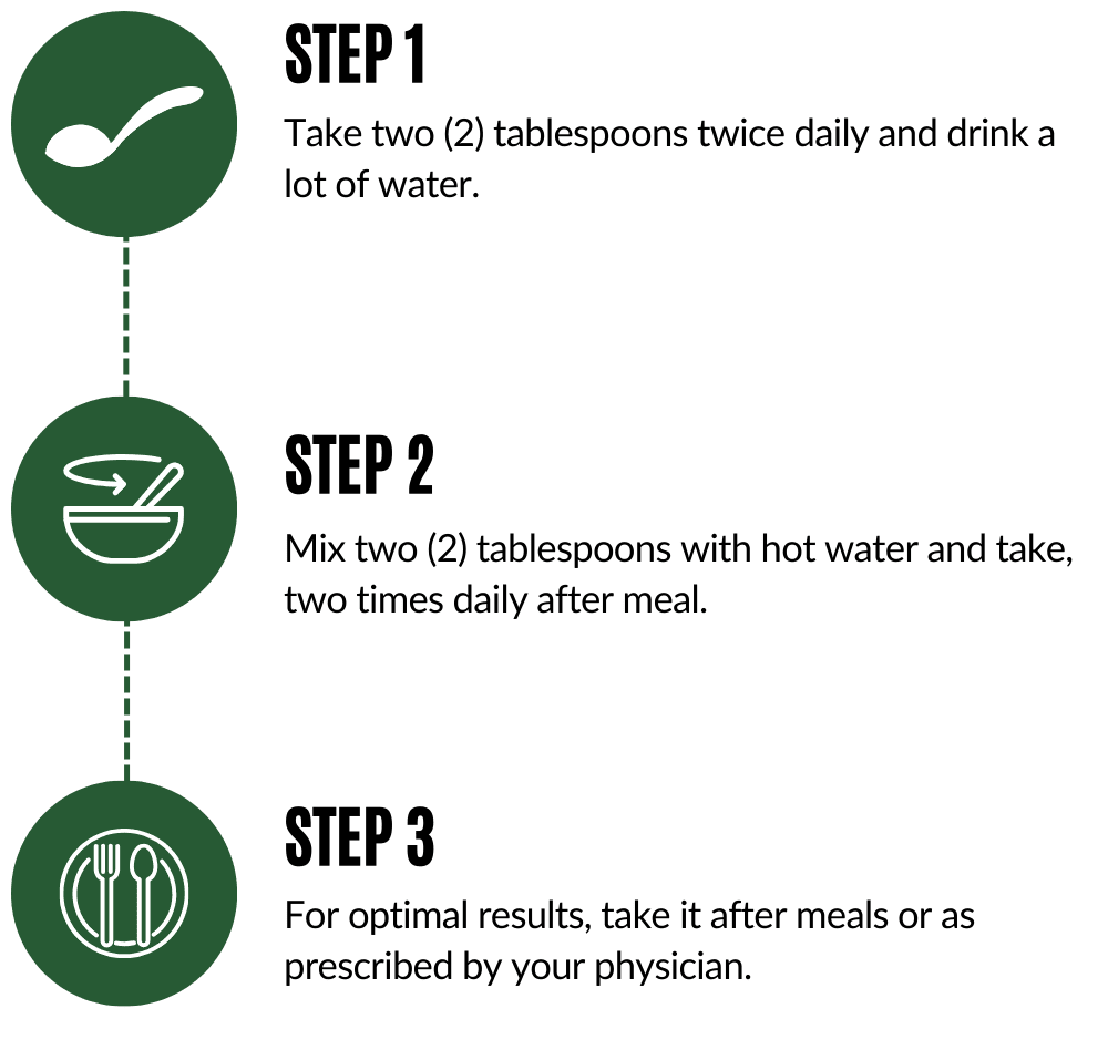 We all need some quick and easy nutrition added to our day. So TWO (2) tablespoons taken directly or mix it with hot/warm water, two times daily after meals. No more excuses!